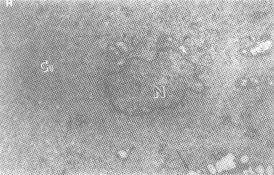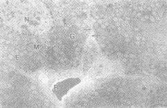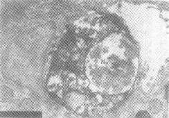 粒線體出現異常分裂增殖的現象,細胞內被小型粒線體填補。 →=粒線體內出現鈣沉著現象,表示血中的鈣濃度降低。