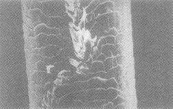 毛小皮溶解而變形 毛小皮幾乎完全消失,可以看到深部的皮質。