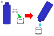 首先將壓縮面膜置放於瓶蓋內。