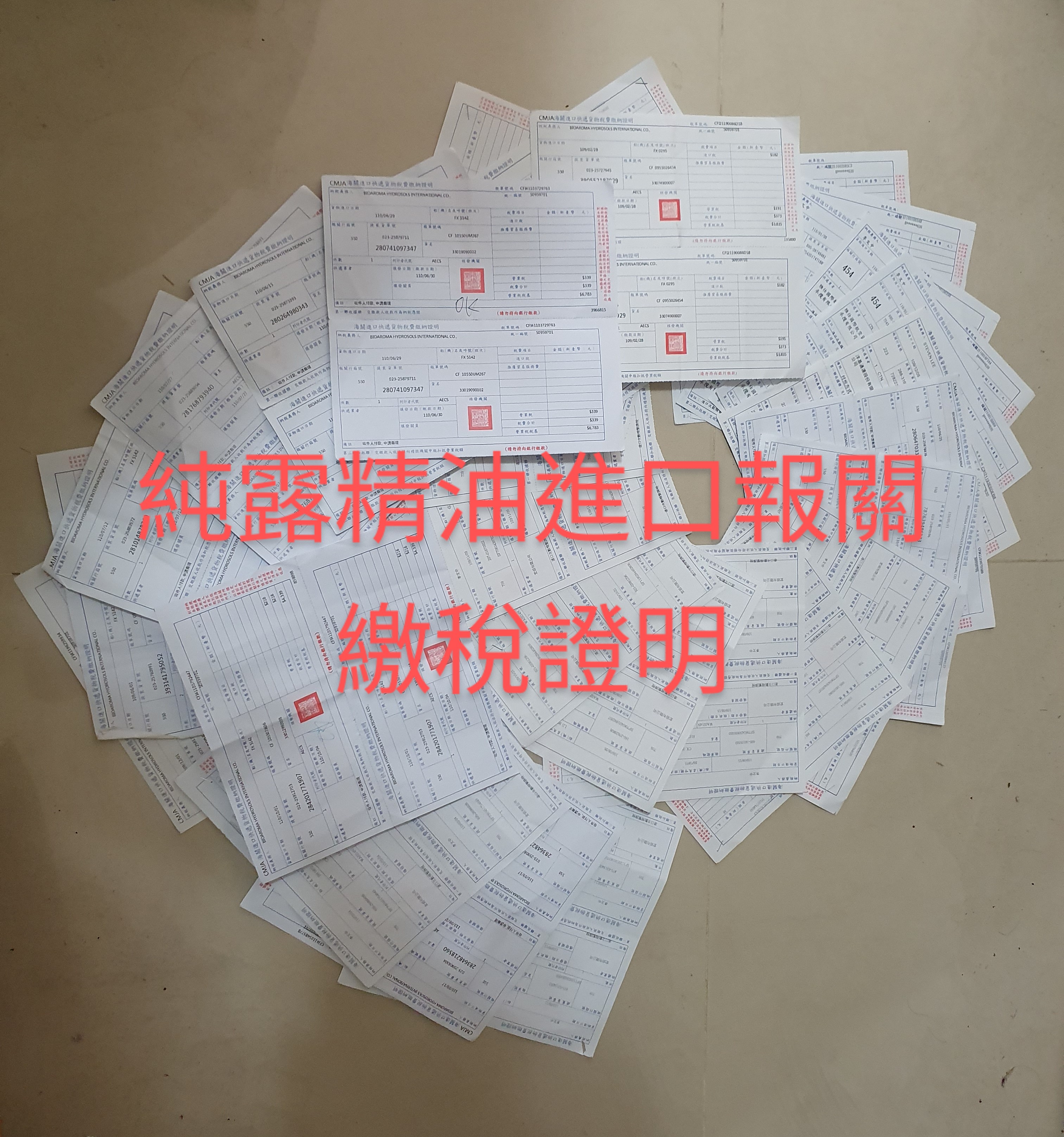 純露精油進口報關繳稅證明