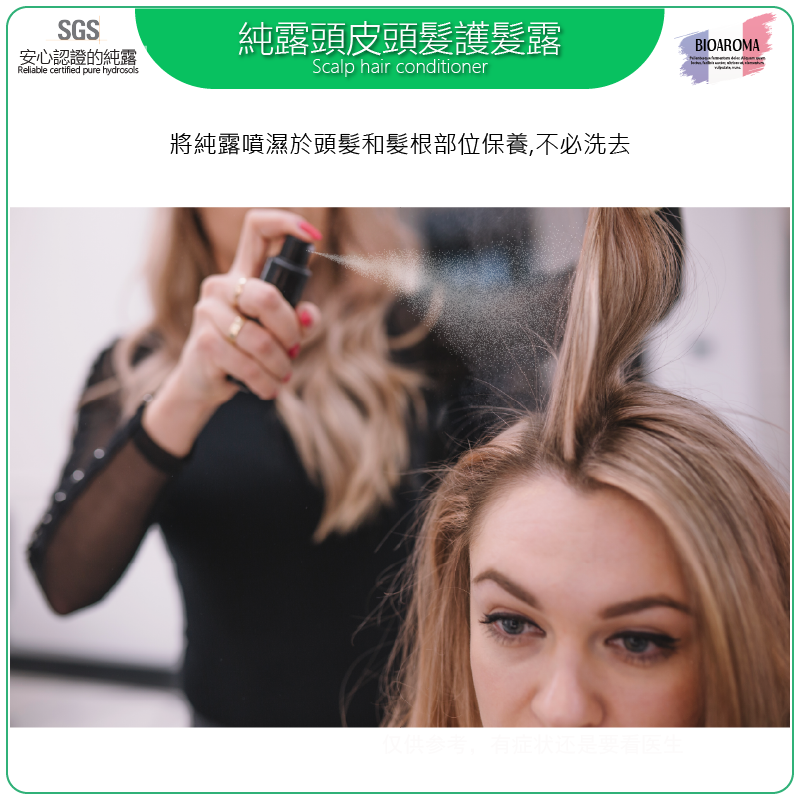 薰衣草純露、天竺葵純露等,都有護髮功效,其他一些純露噴在頭髮上也能使頭髮順滑,回復秀髮亮麗光彩。