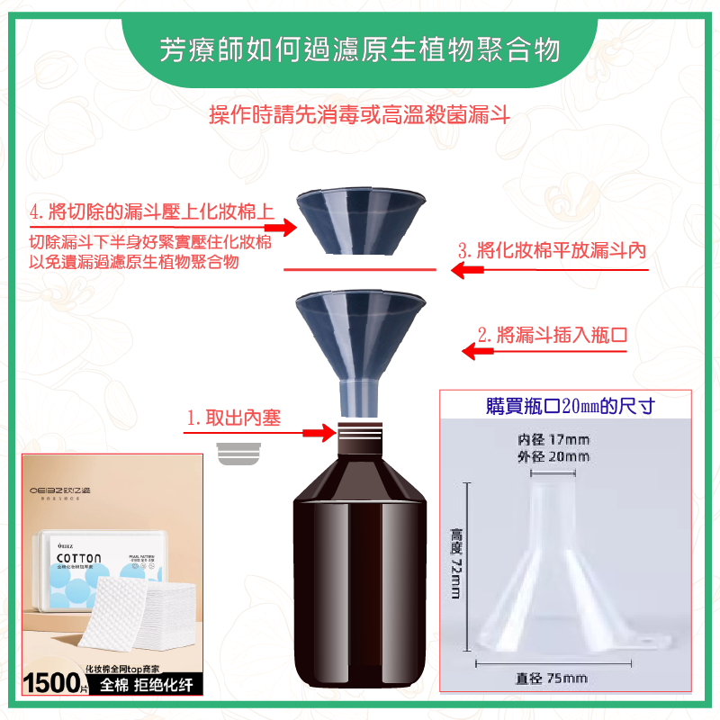 • 避免使用塑料、易溶解或油彩表面的容器稀釋精油,請使用玻璃、不鏽鋼或陶瓷器稀釋。