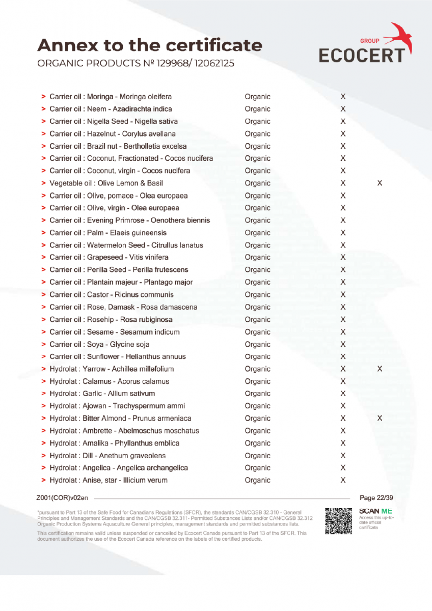 有機成分:產品至少含有 95% 的有機成分。獲得美國農業部有機認證。
