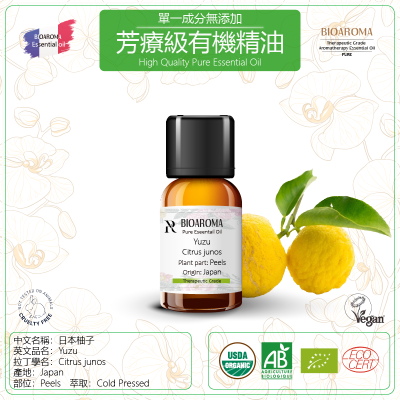 日本的柚子在全球也受到高度評價,本產品是從中精選的果實,採用低溫壓榨法精心提取的100%純正和精油。