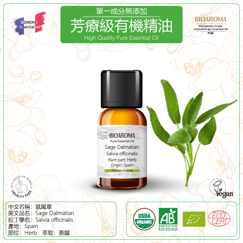 Sage Dalmatian-Salvia officinalis 鼠尾草芳療級有機精油