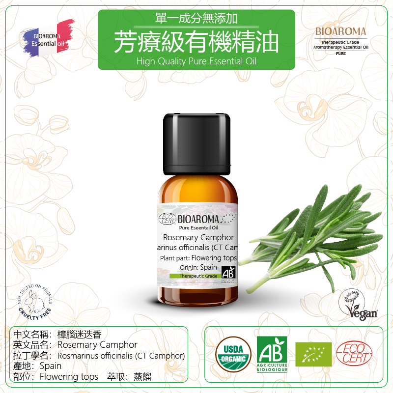 Rosemary Camphor-Rosmarinus officinalis (CT Camphor) 樟腦迷迭香芳療級有機精油