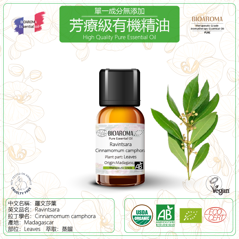 Ravintsara-Cinnamomum camphora羅文莎葉(桉油醇樟)芳療級有機精油