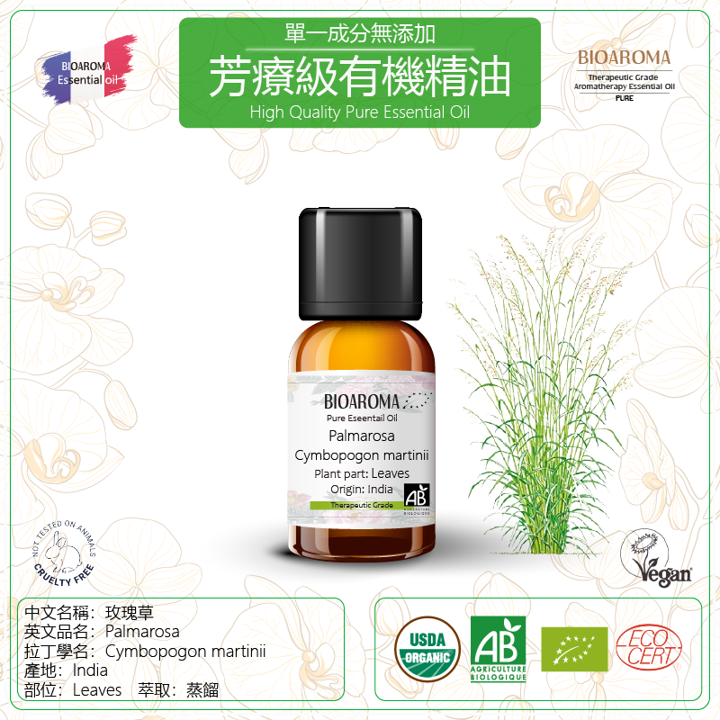 Palmarosa-Cymbopogon martinii 玫瑰草芳療級有機精油