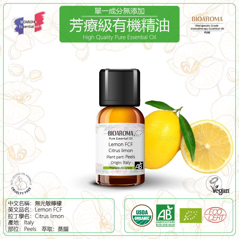 Lemon FCF-Citrus limon 無光敏檸檬芳療級有機精油
