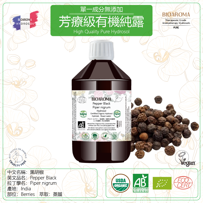 Pepper Black - Piper nigrum 黑胡椒芳疗级有机纯露