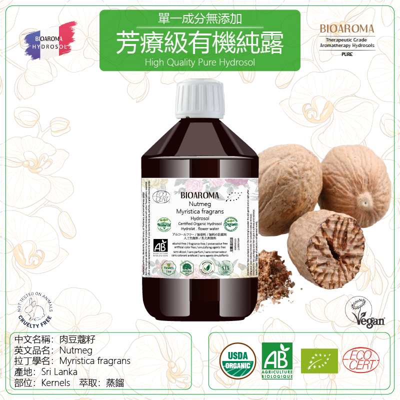 Nutmeg - Myristica fragrans 肉豆蔻籽芳疗级有机纯露