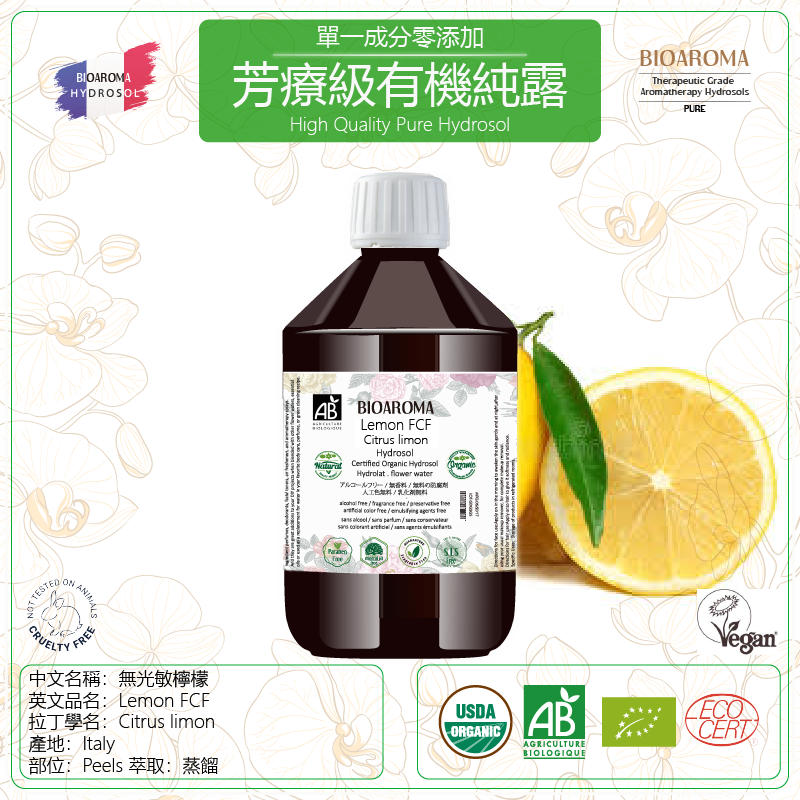 Lemon FCF - Citrus limon 无光敏柠檬芳疗级有机纯露