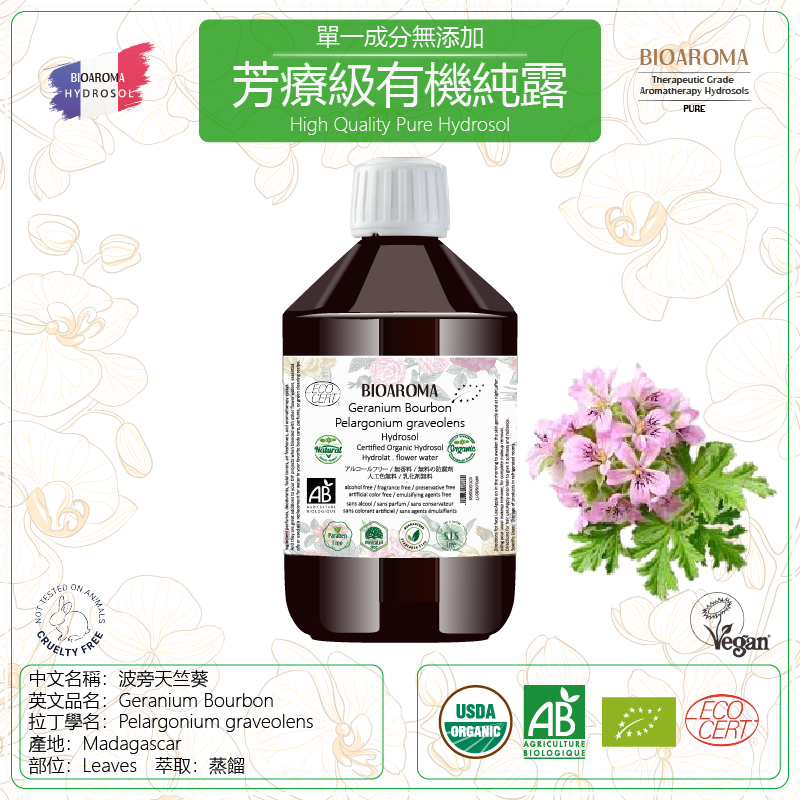 Geranium Bourbon - Pelargonium graveolens 波旁天竺葵芳疗级有机纯露