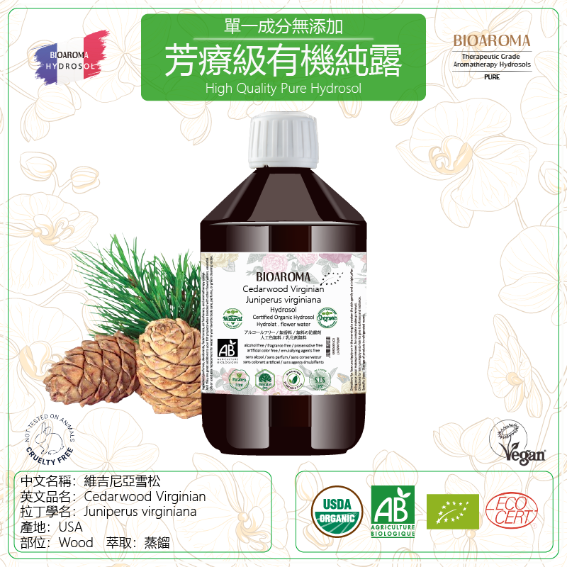 Cedarwood Virginian - Juniperus virginiana 维吉尼亚雪松芳疗级有机纯露